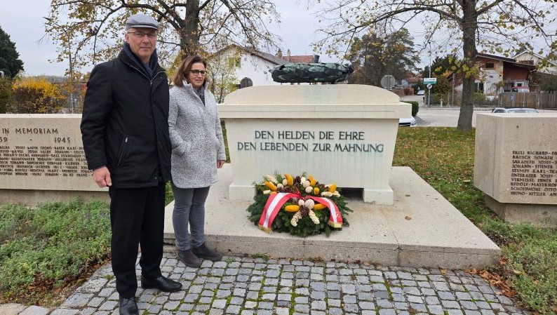 Bürgermeisterin Susanna Kittinger und Gemeinderat Matthias Brunner - in Vertretung des Vizebürgermeisters - legten den Kranz am Kriegerdenkmal nieder. Anschließend folgte der Gang durch den Friedhof und die Segnung aller Gräber durch unseren Pfarrer.