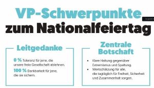 Am Sonntag, dem 26. Oktober, feiern wir Nationalfeiertag. Anlass, auf das zu blicken, was politisch in jüngster Zeit in Österreich Positives passiert ist. Schwerpunkte: Ordnung, Sicherheit und Innovation, konsequent für einen Aufschwung arbeiten.