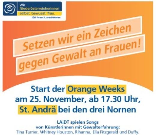 Am 25. November, dem "Internationalen Tag gegen Gewalt an Frauen" startet jährlich weltweit die Kampagne "16 Tage gegen Gewalt". Für St. Andrä-Wördern haben wir uns etwas Besonderes ausgedacht. Um 17:30 Uhr geht es bei den Nornen los: Kommt vorbei!