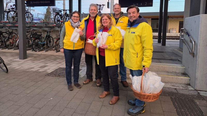 Mit frischen Kipferln und Informationen über die aktuelle Kampagne überraschten Bürgermeisterin Susanna Kittinger, die VP-Gemeinderäte Walter Petz, Christian Müller und Christina Löblich (GPO) sowie Gemeindeobfrau-Stellvertreter Christian Lauer unsere Pendlerinnen und Pendler am Bahnhof St. Andrä-Wördern.
